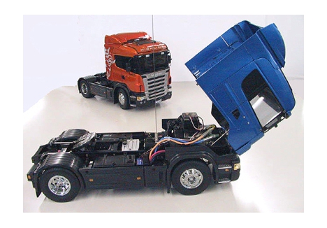 - Cab design – Tilting cabin with molded dashboard and seat: replicates Scania R Series styling