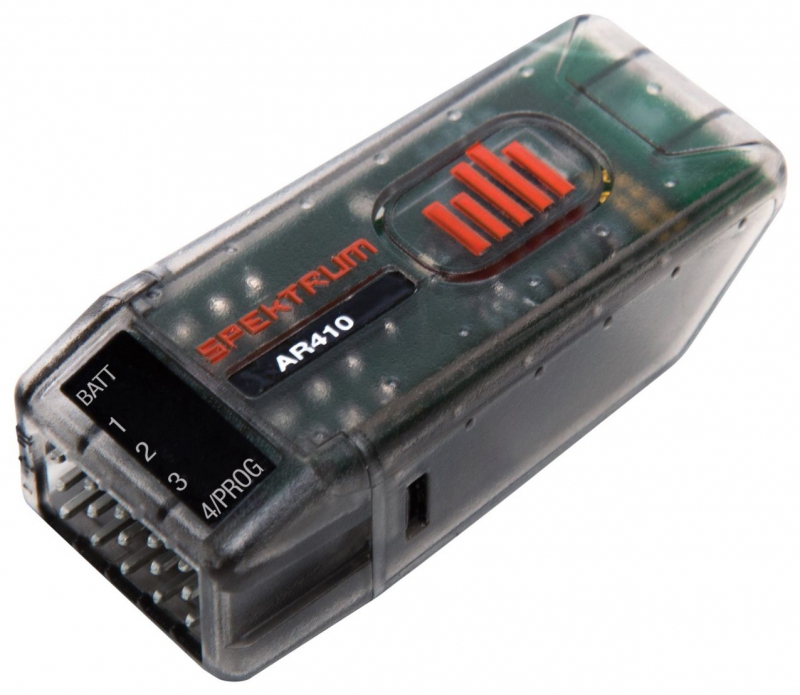 The Spektrum AR410 air receiver is a full-range, 4-channel sport receiver with DSMX/DSM2 compatibility and a compact footprint that's streamlined to fit in a wide range of models. More than just a simple box that connects your servos, the AR410 features an internal antenna design that delivers a whole new world of installation ease that includes a higher-level of durability and convenience while maintaining superior full-range performance for your electric or engine powered aircraft.