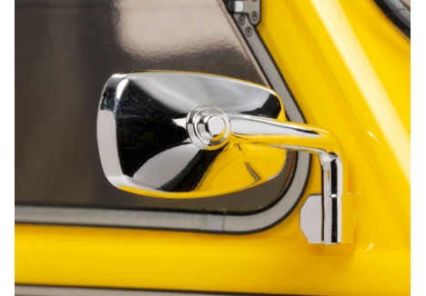 - Metal-plated details – includes separate chrome-finished headlights, mirrors, and bumper for added realism