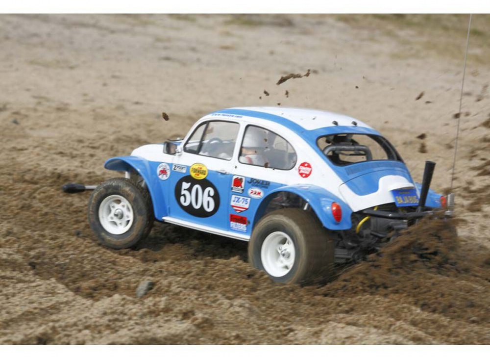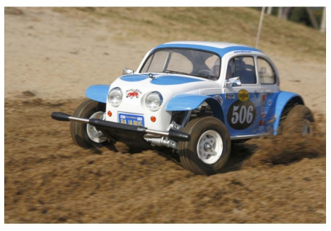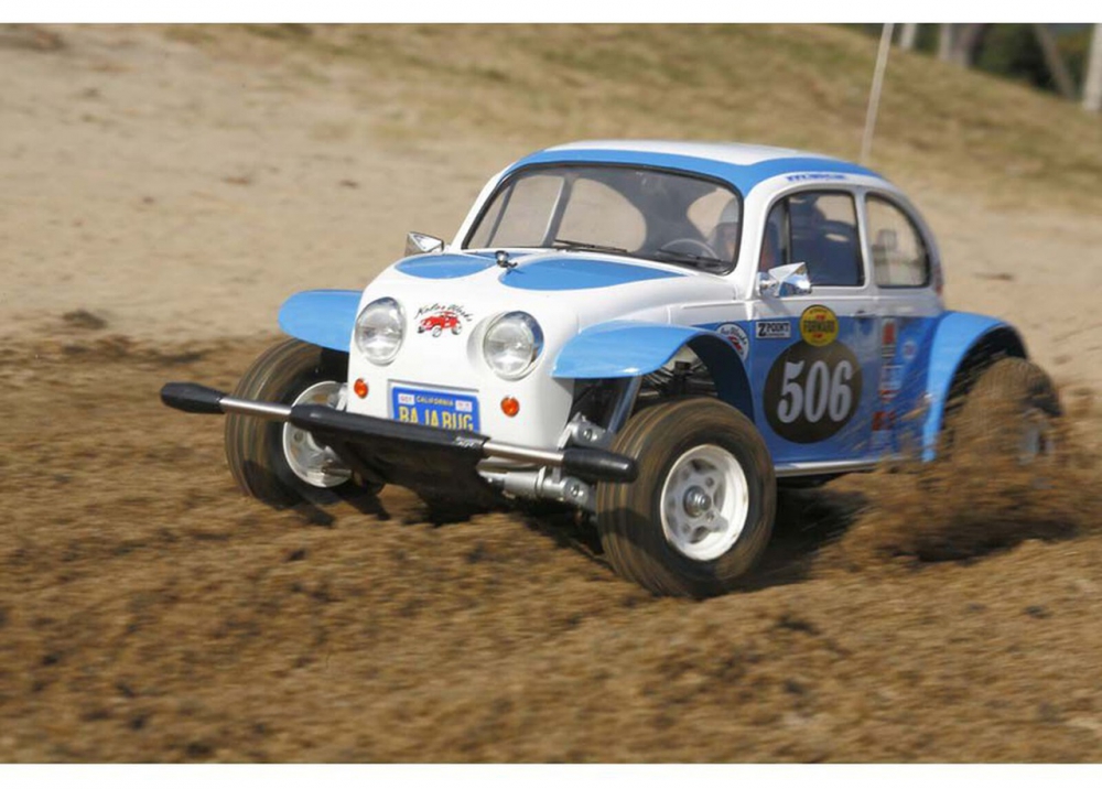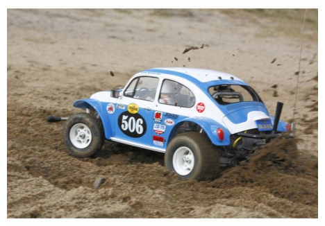 This 2010 version Sand Scorcher has been carefully updated while maintaining the original features of the chassis such as the unique front double trailing arms and rear torsion suspension. R/C fans hearts will definitely race when they see the classic VW Beetle shape and relive the dynamic performance of this machine.