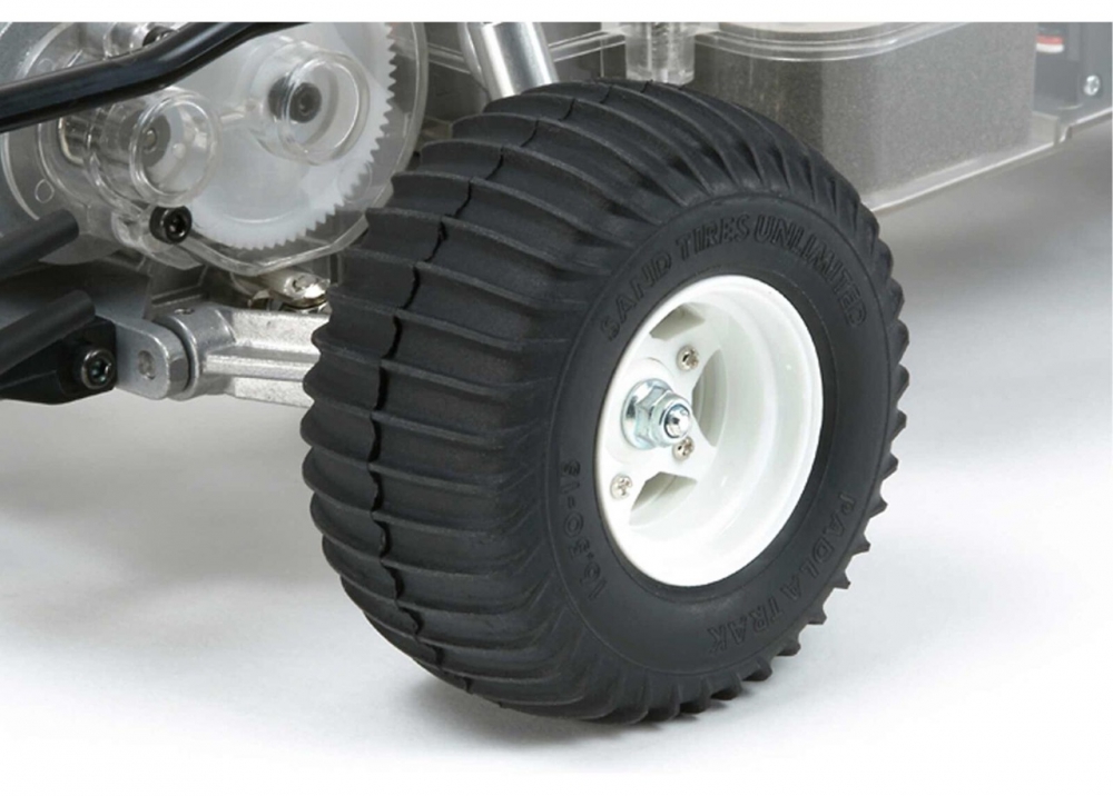 - Dampers: Four oil-filled shocks (Tamiya oil damper RC suspension)