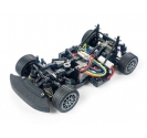 This TAMIYA high-performance rear-wheel drive R/C chassis assembly kit is constructed around a rigid monocoque with the main frame split into front and rear sections. It offers superior rear high traction drive characteristics and fuss-free maintenance of parts such as the easy-access differential. C.V.A. (Constant Volume Adjustable) oil shock-damped 4-wheel double wishbone suspension features dedicated long arms and steering linkage components for a range of setup options. A silky-smooth drivetrain utilizes full ball bearings, oil-filled gear differential unit and universal drive shafts. It can be assembled with a 210mm (S), 225mm (M) or 239mm (L) wheelbase, making it compatible with appropriately-sized existing Tamiya M-chassis body parts sets.