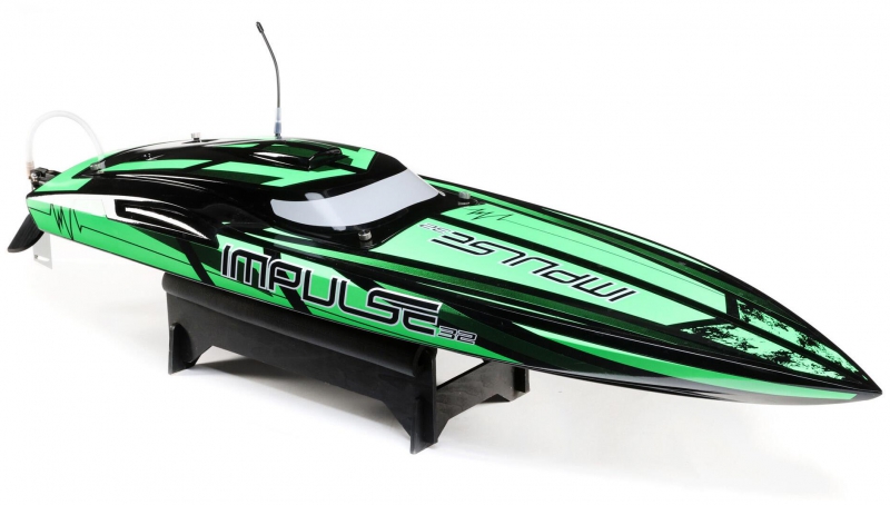 The Pro Boat Impulse 32-inch Brushless V-Hull picks up where the Impulse 31 left off and brings excitement with new styling unlike any other RC boat on the market. Now featuring Spektrum Smart Technology, the Impulse 32 is designed for action and ready for racing.