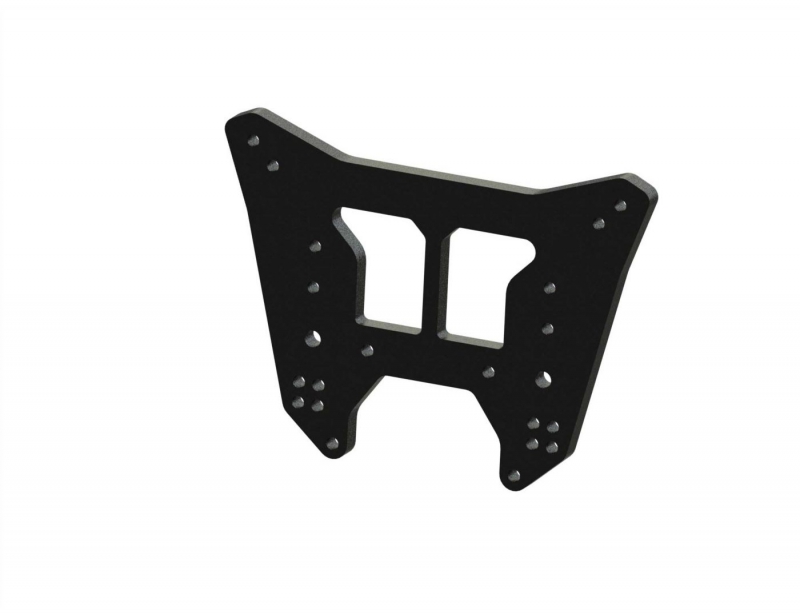 The ARRMA Rear Aluminum Shock Tower ARA320581 is crafted from precision lightweight aluminum and finished in black anodizing for both durability and visual appeal. It provides a secure suspension mounting point designed to withstand extreme RC use.