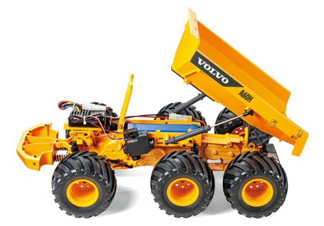 The Tamiya TAM58676 RC model brings industrial realism to the world of remote control with a detailed replica of the Volvo A60H articulated hauler. Based on the full-scale vehicle unveiled at bauma 2016, this Tamiya Volvo A60H Hauler 6x6 kit features a polycarbonate cab section and molded ABS bed, capturing the rugged lines and proportions of the original. With sticker detailing for grilles, air inlets, headlights and logos, the model offers visual authenticity alongside mechanical performance.