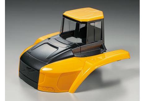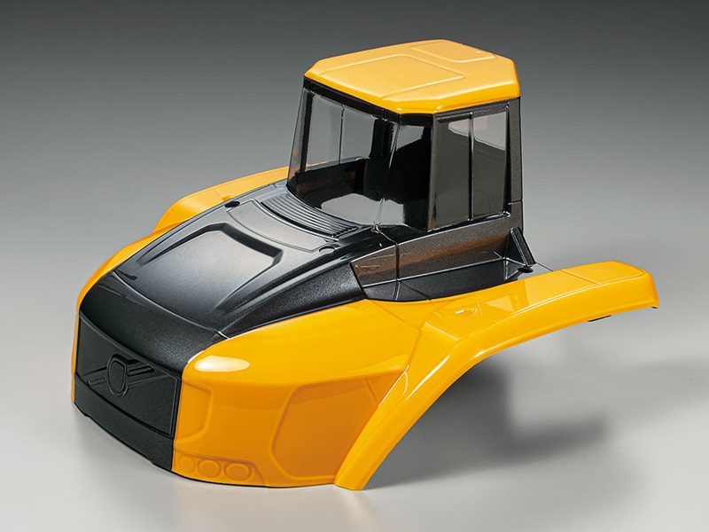The cab section of the Tamiya polycarbonate RC cab body shell is precision-molded to reflect the Volvo A60H’s real-world design. From the grille and air inlets to the headlight surrounds and branding, every detail is recreated with included stickers, offering a scale-accurate finish that complements the functional chassis underneath.