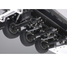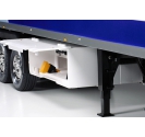 The Tamiya TAM56319 European-style hauler with 3-axle suspension, single tires, and refrigeration unit detail features a suspension system that replicates the mechanical behavior of full-size trailers. Each of the three axles is independently supported by metal leaf springs and friction dampers, allowing the trailer to absorb terrain vibration and maintain balanced load distribution. The equalizer system adds another layer of realism, simulating the dynamic movement of axles under shifting weight. This configuration not only enhances towing stability but also provides a visual and functional representation of commercial trailer suspension, making the TAM56319 a standout in scale authenticity.