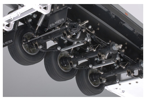 All-new 3-axle suspension with 6 wheels, as often seen on roads in Europe and other parts of the world.- Wheels are a newly-developed metal-plated type.