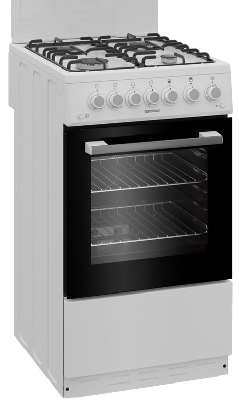 Highly efficient gas burners with upward-facing flames ensure faster cooking with lower energy consumption. Rated A for energy efficiency, the blomberg 50cm gas cooker white ggs9151w helps to minimise household energy bills while delivering excellent cooking results. The built-in flame safety device offers added peace of mind by automatically cutting off the gas supply if the flame is accidentally extinguished, making this affordable gas cooker a safe choice for any home.