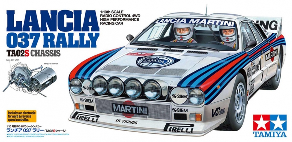 - Product Type: Tamiya Lancia 037 Rally TA02-S TAM58654, Tamiya TAM58654 Lancia 037 Rally 4WD R/C car, Tamiya Lancia 037 Rally 1/10 scale R/C car TAM58654, Tamiya Lancia 037 Rally with 4WD shaft-driven chassis, Tamiya TAM58654 4-wheel independent suspension R/C car