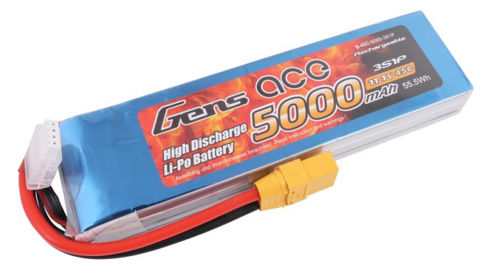 - Gens ace 5000mAh 11.1V 3S 45C Lipo Battery Specs: