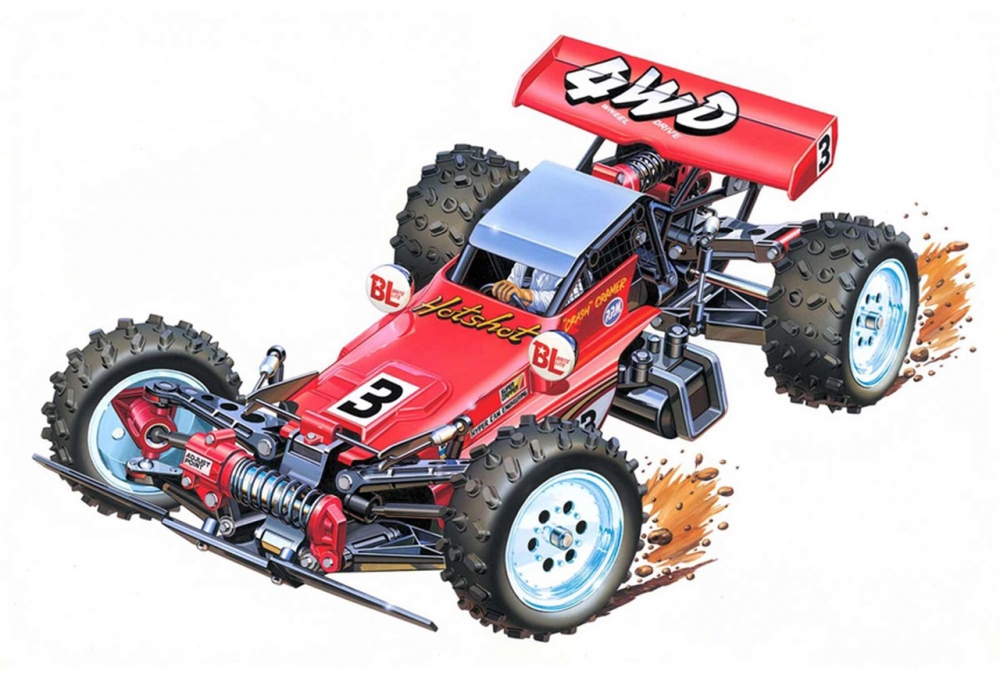Fans around the world have been clamoring for more re-releases of classic Tamiya R/C cars and Tamiya has indeed been listening. The eye-catching Hotshot 4WD buggy, which was originally released in the 1980s and helped popularize the R/C hobby, now makes a return with its timeless body shape matched with updated improvements to let both old and new R/C fans enjoy exciting off-road action.