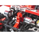 The Tamiya Hot Shot 2007 4WD shaft-driven buggy is built for rugged terrain and aggressive driving. Its shaft-driven 4WD system ensures balanced power distribution across all wheels, while the double wishbone suspension absorbs shocks and maintains stability. The upgraded diaphragm-type oil dampers offer smoother response and better durability. With a tread width of 19.4 cm and balloon-style tyres measuring 8.2 cm in diameter, the buggy grips uneven surfaces with confidence and control.