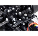 The Tamiya 4WD shaft-driven RC car with polycarbonate body offers a robust and responsive driving experience. The shaft-driven 4WD system ensures consistent power delivery to all four wheels, improving traction and control on paved surfaces. The polycarbonate body not only replicates the Porsche’s sleek silhouette but also contributes to the car’s lightweight construction, enhancing speed and agility. The bathtub-type frame and friction dampers work together to absorb shocks and maintain stability, making this model well-suited for on-road racing and casual driving alike.