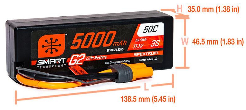 • Spektrum G2 Smart Charger required (or earlier Smart Charger with G2 update, available at spektrumrc.com)