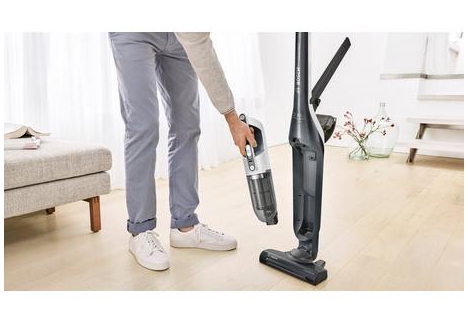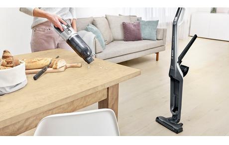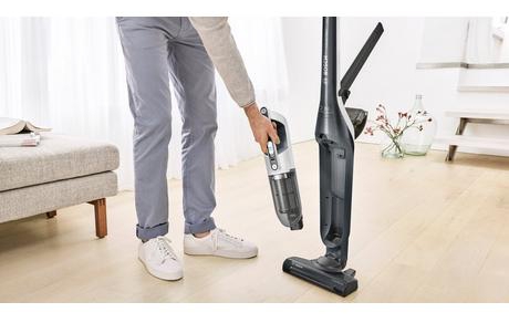 As a versatile Bosch 2-in-1 cordless upright hoover, it easily transforms into a handheld unit for quick pick-ups on upholstery, worktops, or tight corners. Whether you're cleaning hard floors or carpet, the motorised brush roll ensures consistent results, while the lightweight design allows for smooth manoeuvrability throughout your home.