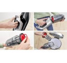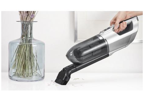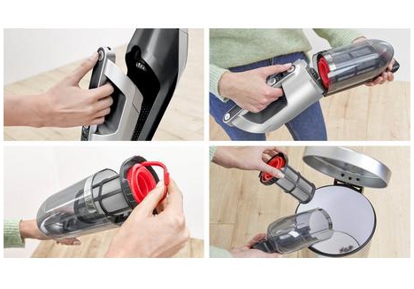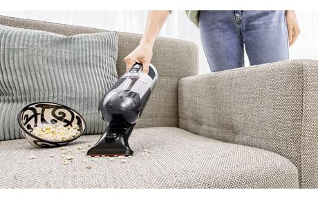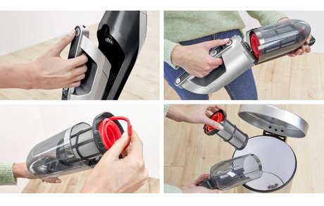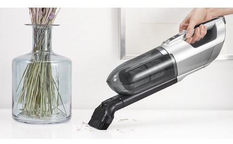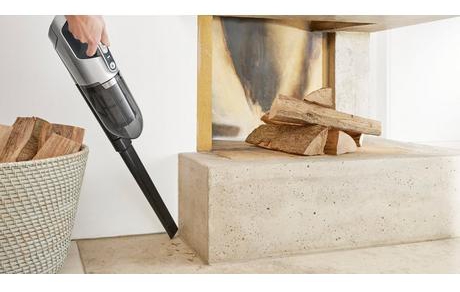 This lightweight hoover with handheld mode comes with convenient accessories like an extendable crevice tool and a 2-in-1 brush for furniture and upholstery – all cleverly stored onboard for quick access. Its slim and self-standing design means it fits neatly into cupboards or corners and won't topple when left upright mid-clean.