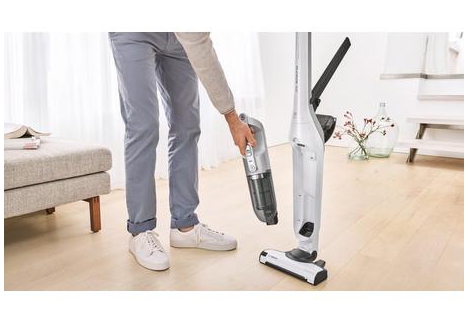 Featuring Bosch’s powerful lithium-ion battery technology, this vacuum delivers consistent suction across a wide range of floor types. The bagless upright vacuum for carpets and hard floors includes two power settings, so you can switch easily between daily dusting and more intensive deep cleans.