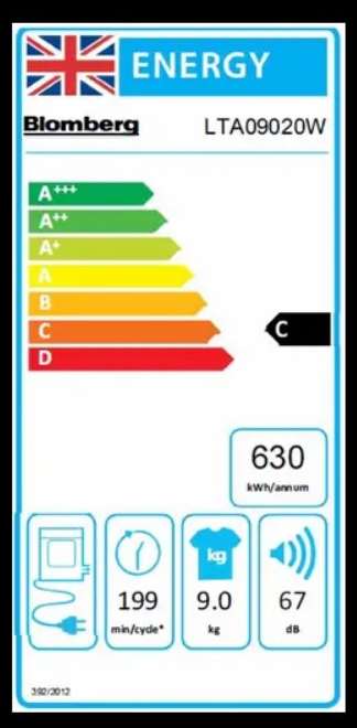 The blomberg lta09020w 9kg vented tumble dryer delivers solid performance with an energy efficiency class C rating. It operates at a low noise level of 67 dB, providing a quieter drying experience. Featuring 15 carefully designed drying programmes, this tumble dryer combines convenience and efficiency, helping to reduce energy usage while delivering excellent drying results.