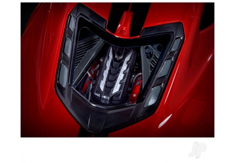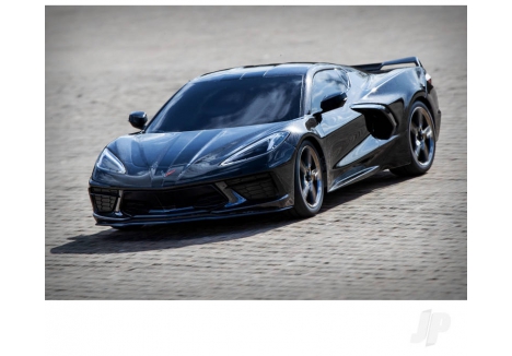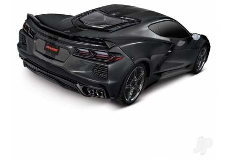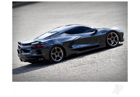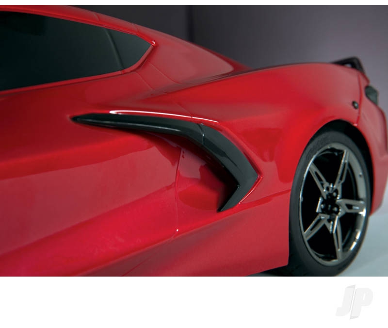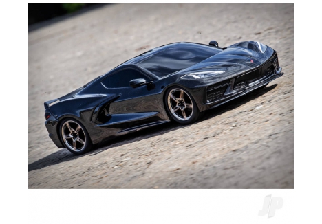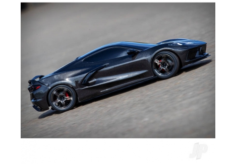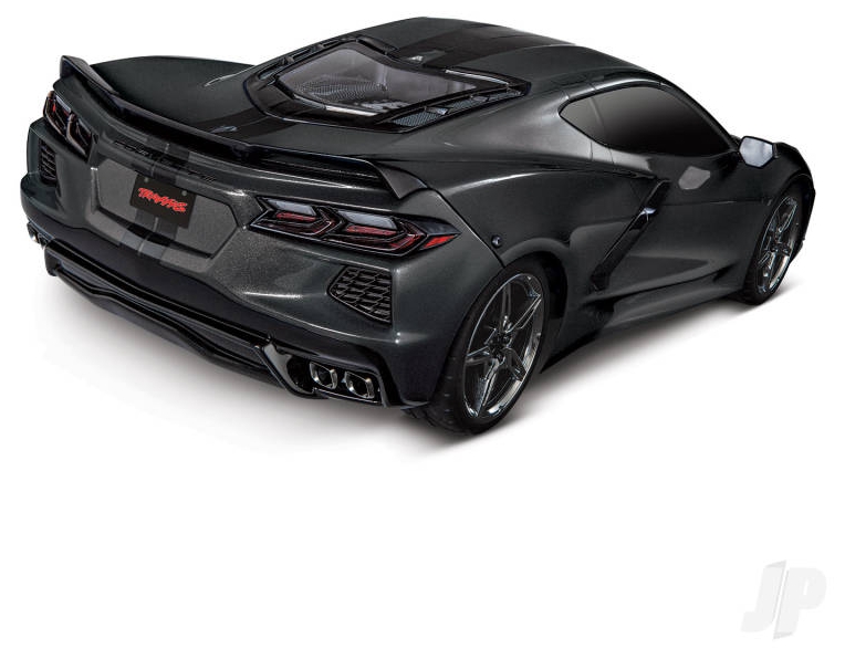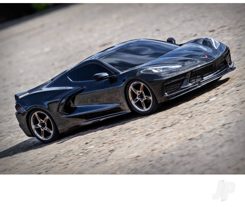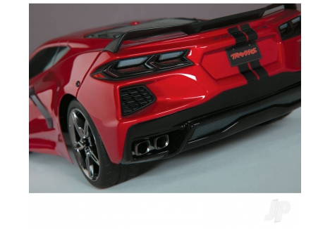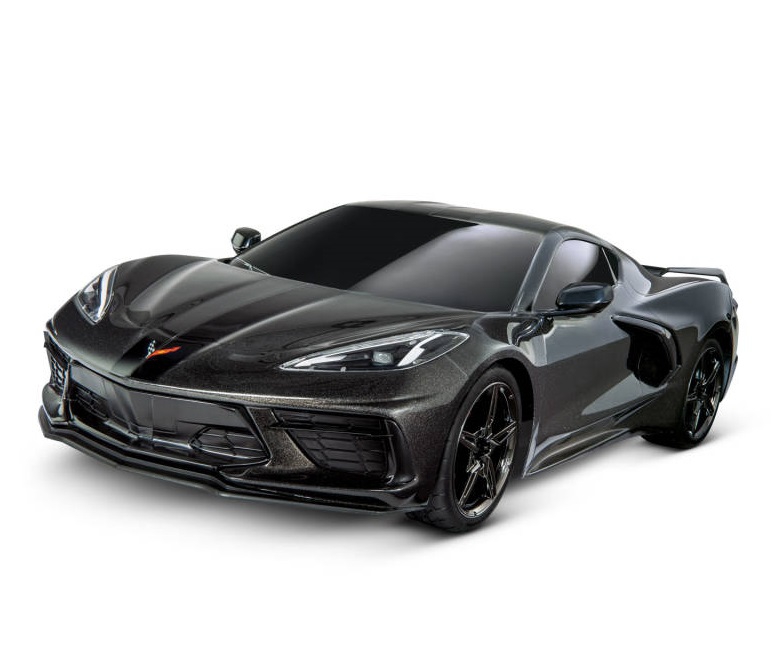 The name is synonymous with American sportscar excellence: Corvette. Traxxas delivers the spirit and excitement of the all-new mid-engine Corvette in exacting detail, for a replica that performs as realistically as it looks. The faceted, jet-fighter body and its massive side intakes are duplicated to the millimeter. The simulated LT2 V8 is visible beneath the rear hatch. Authentic black-chrome wheels fill the fenders. Beautiful to display—with Traxxas performance that demands you to drive.