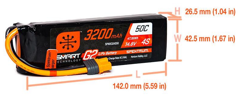 • Spektrum G2 Smart Charger required (or earlier Smart Charger with G2 update, available at spektrumrc.com)