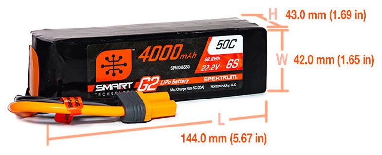 - 1x Spektrum Smart G2 6S 22.2V 4000mAh 50C LiPo Battery with IC5 connector