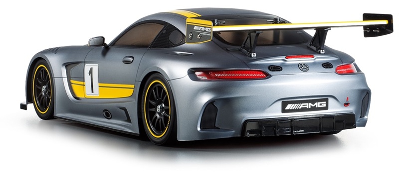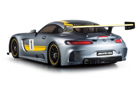 This R/C assembly kit depicts the fabulous body of the Mercedes-AMG GT3 race car, which was created for GT3 class racing. The GT3 is based on the Mercedes-AMG GT, which was launched in late 2015 for customer sport racing. The Mercedes-AMG GT3 has blazed new trails in customer sports with its intelligent vehicle concept. The excellent racetrack performance of the standard GT already proved the best possible basis for this new GT3 class race car. The 6.3-liter V8 powered car has quickly become a modern legend with race results like a clean sweep of the top 4 in a 2016 Nürburgring 24-hour race.