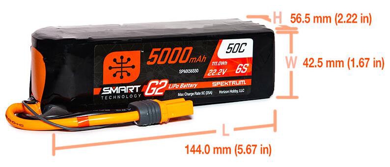 - 1x Spektrum Smart G2 6S 22.2V 5000mAh 50C LiPo Battery with IC5 connector