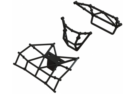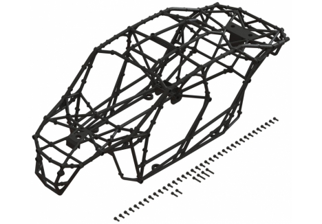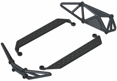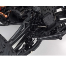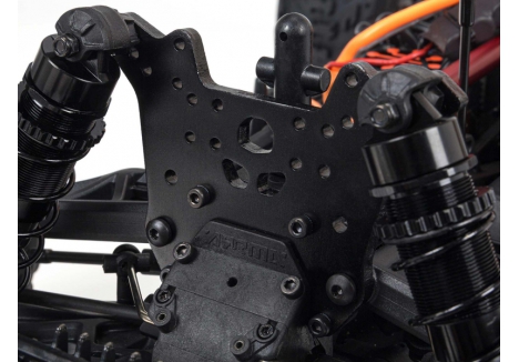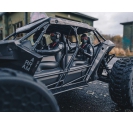 The 3mm anodized aluminium chassis of the ARRMA buggy with aluminium chassis and oil-filled shocks is reinforced with composite side guards, EXB-compatible top plate, and a tower-to-tower brace. This structure absorbs impact and maintains rigidity under high-speed loads. The full roll cage integrates with the chassis and bumpers, while crash-absorbing skid plates and spring-loaded rear bumper protect against terrain strikes. Combined with heavy-duty steel driveshafts and all-metal drivetrain components, the chassis ensures the ARRMA C-ARA7618T1 speed assault buggy remains stable and resilient during extreme bashing.