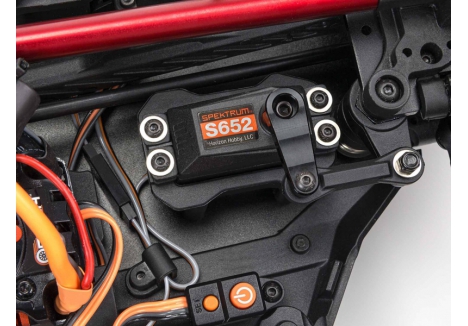 - Steering Servo: Spektrum S652 metal-geared digital – 265 oz-in torque at 7.4V, waterproof and factory-installed