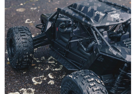 The ARRMA C-ARA7618T1 speed assault buggy is a 1/7 scale brushless RC car engineered for extreme terrain domination and military-grade styling. Built on the proven 6S BLX platform, this 4WD vehicle introduces an extra-long wheelbase, wide-track suspension, and a mechanical handbrake—making it the first ARRMA off-road model to offer evasive maneuver capabilities. Whether you're bashing through brutal terrain or executing precision drifts, the ARRMA C-ARA7618T1 4WD military-style truck delivers unmatched control, durability, and visual impact. With a matte camo body, full roll cage, and detailed crew interior, this assault buggy is ready for mission-grade performance.