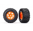 Traxxas Tires & wheels, assembled, glued (X-Maxx orange wheels, Maxx AT tires, foam inserts) (left & right) (2) 8S Rated