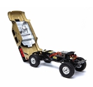 The Axial SCX24 Gladiator brown crawler with extended wheelbase and steel chassis rails features a 22mm longer wheelbase than standard SCX24 models. This extension enhances stability, especially when climbing steep inclines or navigating uneven terrain. The added length also improves body fitment, allowing the detailed Jeep JT Gladiator shell to sit naturally on the chassis. Combined with steel C-channel rails and bracing, the extended wheelbase contributes to a more planted and predictable driving experience, making it ideal for both beginners and seasoned RC enthusiasts.