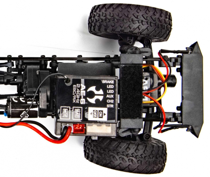 Mounted just above the front axle is the Axial® AS-1 servo, with a servo saver that allows for steering accuracy while protecting the servo gears in the event of a bind or impact.