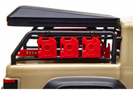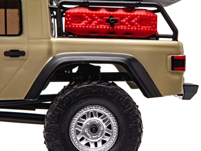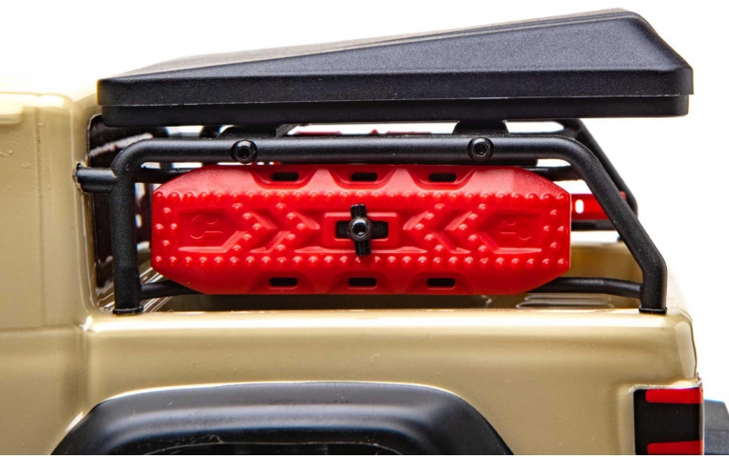 In addition to its officially licensed and factory-finished scale body, the SCX24™ Jeep® JT Gladiator includes a detailed interior with scale driver and Tuff Stuff Overland scale accessory pack mounted to the bed rack.