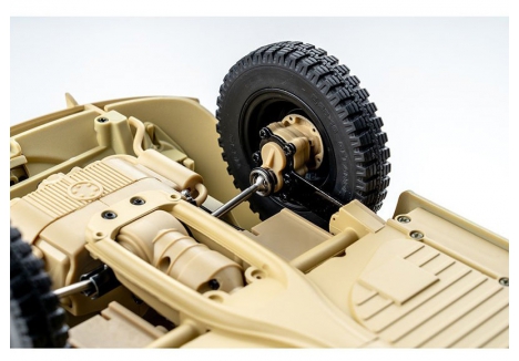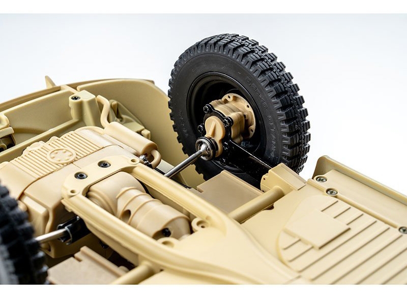 - Transmission: Two-speed gearbox – simulates 1st and 3rd gear ratios of the original Kübelwagen