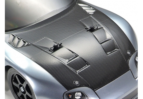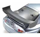 The Tamiya Supra Racing A80 with 6-spoke wheels and slick tyres replicates the aggressive styling of the original sports car. Molded in lightweight polycarbonate, the body captures the vented bonnet, sculpted lines, and aerodynamic contours of the fourth-generation Supra. Separate molded parts for the side mirrors and rear wing add depth and realism, while the included body stickers allow for custom detailing. Combined with the race-inspired wheels and tyres, the visual impact is unmistakable both on display and in motion.