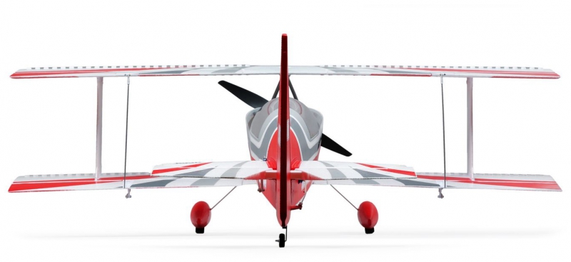 The E-flite A-EFL16550 aerobatic biplane with 60A Smart ESC and 4S LiPo compatibility is equipped with a factory-installed brushless power system that includes a Spektrum Avian 60A Smart ESC. This ESC supports telemetry feedback such as battery voltage, current, and motor temperature when paired with compatible Spektrum transmitters. The system is optimized for both 3S and 4S LiPo batteries, allowing pilots to choose between balanced sport flying or high-thrust 3D performance. With a 4S battery, the Ultimate 3D unlocks unlimited vertical capability, making it suitable for advanced aerobatic routines and extreme maneuvers.