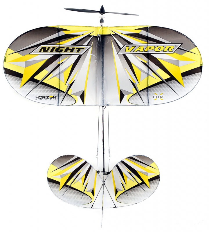 Over its nearly decade-long history, the original ParkZone® Night Vapor slow flyer became a favourite of a wide range of pilots for its unique indoor and outdoor, day or night, versatility. There was simply nothing else like it. Now the E-flite® UMX™ Night Vapor picks up where that popular ultra-micro aircraft left off, adding exciting upgrades that make it more fun than ever before! With enhanced durability, the UMX Night Vapor is now even better at handling bumps and collisions when flying indoors in suitable spaces such as large rooms or gymnasiums, or outside almost anywhere in calm to low wind conditions. Plus, you can choose between two fully factory-assembled versions: the convenient, all-in-one-box Ready-To-Fly (RTF) that includes a transmitter, battery, and charger, or the Bind-N-Fly® (BNF) Basic that helps you lower costs by using your own compatible Spektrum™ transmitter, battery, and charger. Either way, you can be flying almost anywhere, day or night, in just the time it takes to charge a battery!