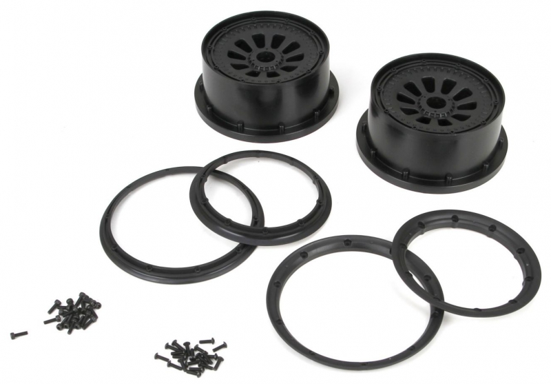 Upgrade your 1/5-scale rig with tough and authentic Losi black beadlock wheels.