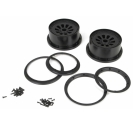 2 × black wheels, 2 × inner beadlock rings, 2 × outer beadlock rings, mounting hardware |