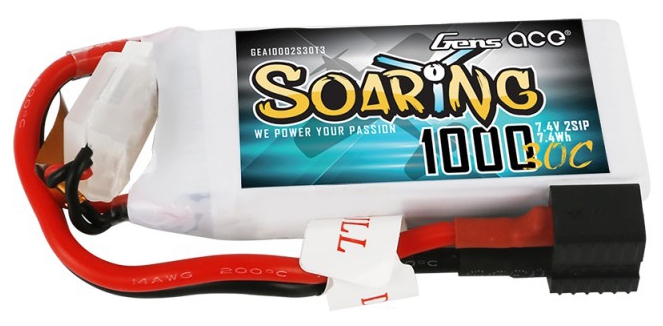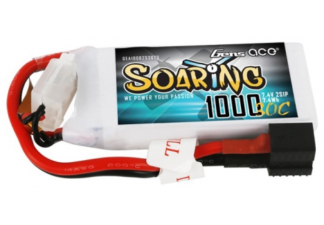 Gens ace Soaring 1000mAh 7.4V 30C 2S1P Lipo Battery Pack Specs: