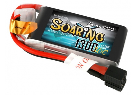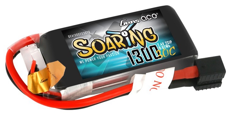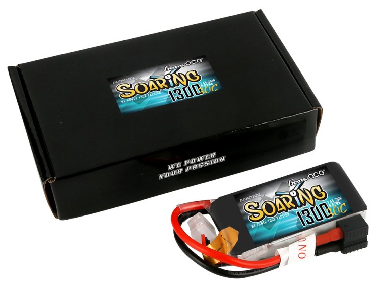 Gens ace Soaring 1300mAh 7.4V 30C 2S1P Lipo Battery Pack is customized for small scale of helicopter and airplane,25c middle level c rate ,not wasting extra power to loose during flight,saved energy for longer flight time.long cycle life.gathered hundreds of excellent engineers's years work. it is suitable for RC helicopter and RC plane.