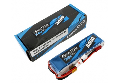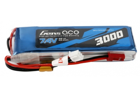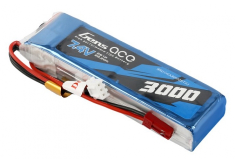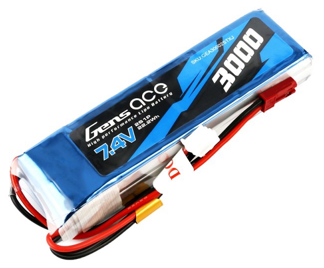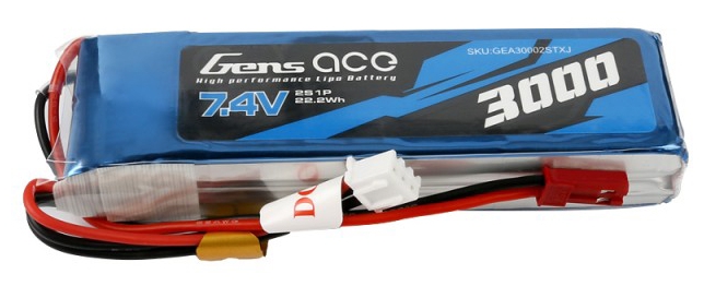 Gens ace 3000mAh 7.4V 2S1P Lipo Battery Pack Specs :Capacity:3000mAh- Voltage:7.4V (2s)