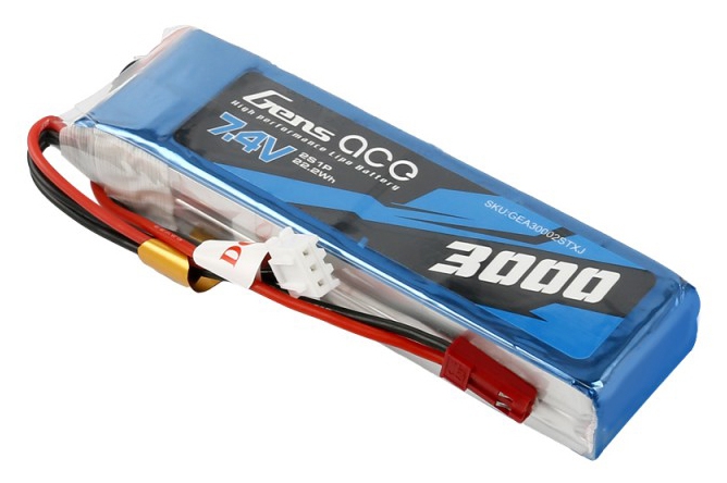 Gens ace lipo 3000mAh 2S1P lipo battery pack has Remarkable stacking technology which enables single-cell capacities of 3000mAh. High discharge performance and high energy density, Gens ace 3000mAh 7.4V 2S1P Transmitter Lipo Battery are suitable for RC Model.