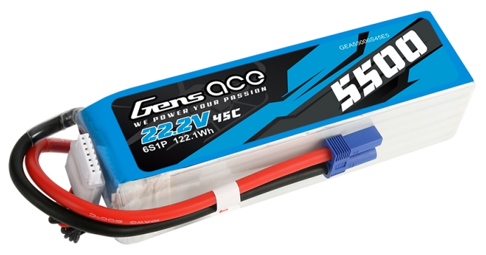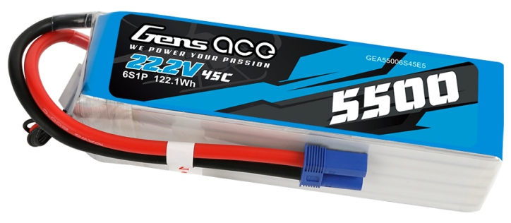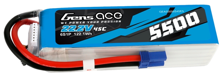 - (1) Gens Ace O-G6S5500-45E5 6S 22.2V 5500mAh 45C LiPo Battery with EC5 Connector