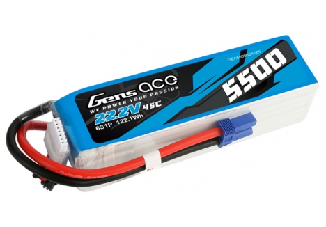 Product Description of Gens Ace O-G6S5500-45E5 6S 5500mAh 45C LiPo battery with EC5 connector