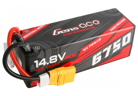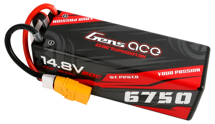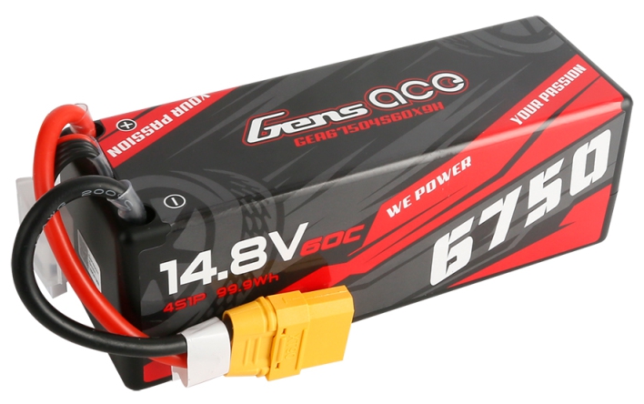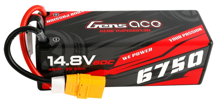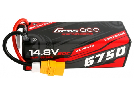 Gens ace 6750mAh 14.8V 60C 4S1P HardCase Lipo BatterySpecs:- Capacity: 6750mAh