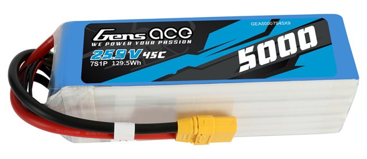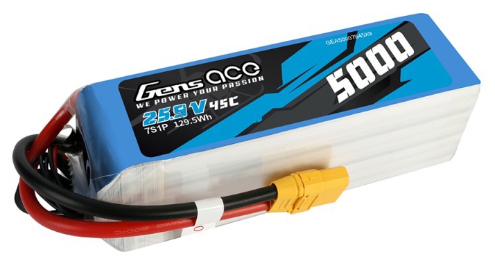 - (1) Gens Ace O-G7S5000-45X9 7S 25.9V 5000mAh 45C LiPo Battery with XT90 Connector