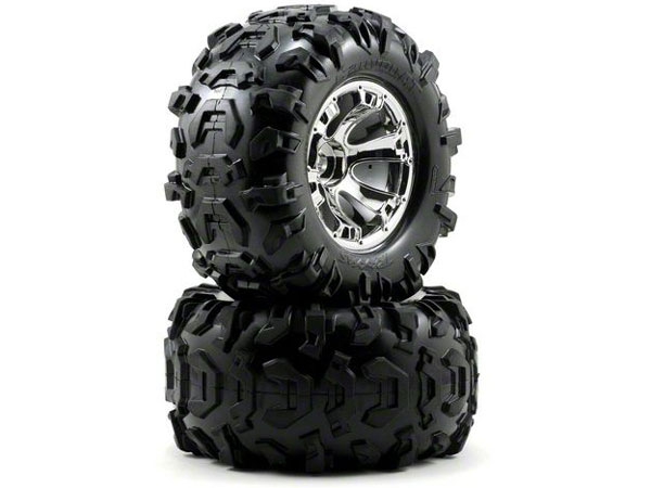Dirt, mud, snowno matter where you drive, you can count on huge Canyon AT tyres to get you there and back. The multi-terrain tread features large, angular lugs that put horsepower to the ground for powerful acceleration and all-terrain traction. tyres come mounted with foam inserts and pre-glued to 3.8" chrome Geode wheels. Protect your Geode wheels with beadlock-style sidewall protectors: 5664, 5665, 5666, 5667.